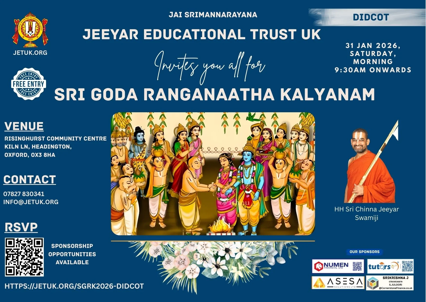 To celebrate this great occasion of Thirukalyanam which marks the end of Dhanur masam JETUK humbly invites all the devotees to please come along and take blessings of the divine couple Sri Goda Ranganatha.